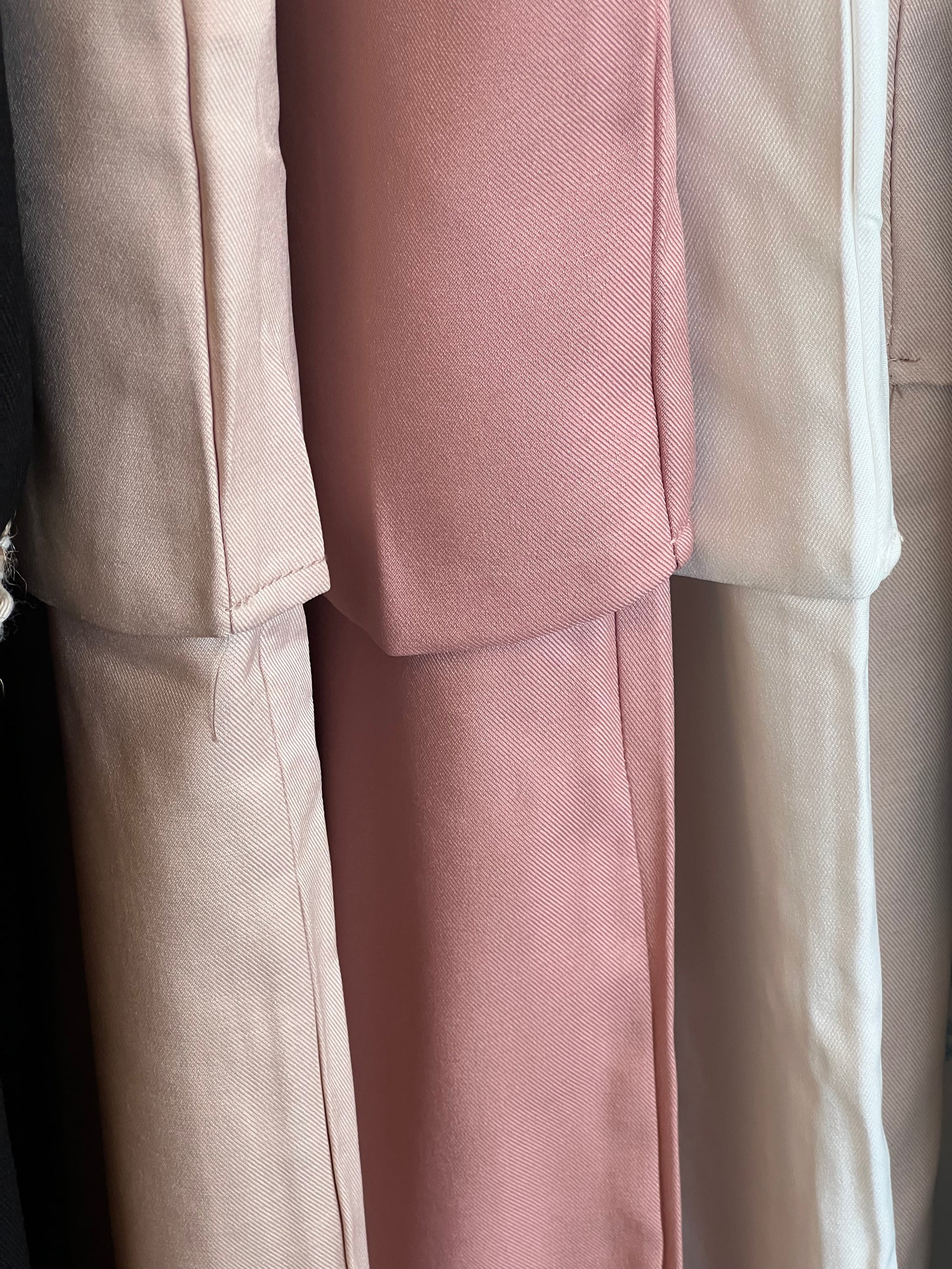 Disponible en tonos rosa, beige y blanco, es una prenda versátil que puedes llevar tanto en ocasiones casuales chic como en eventos especiales.