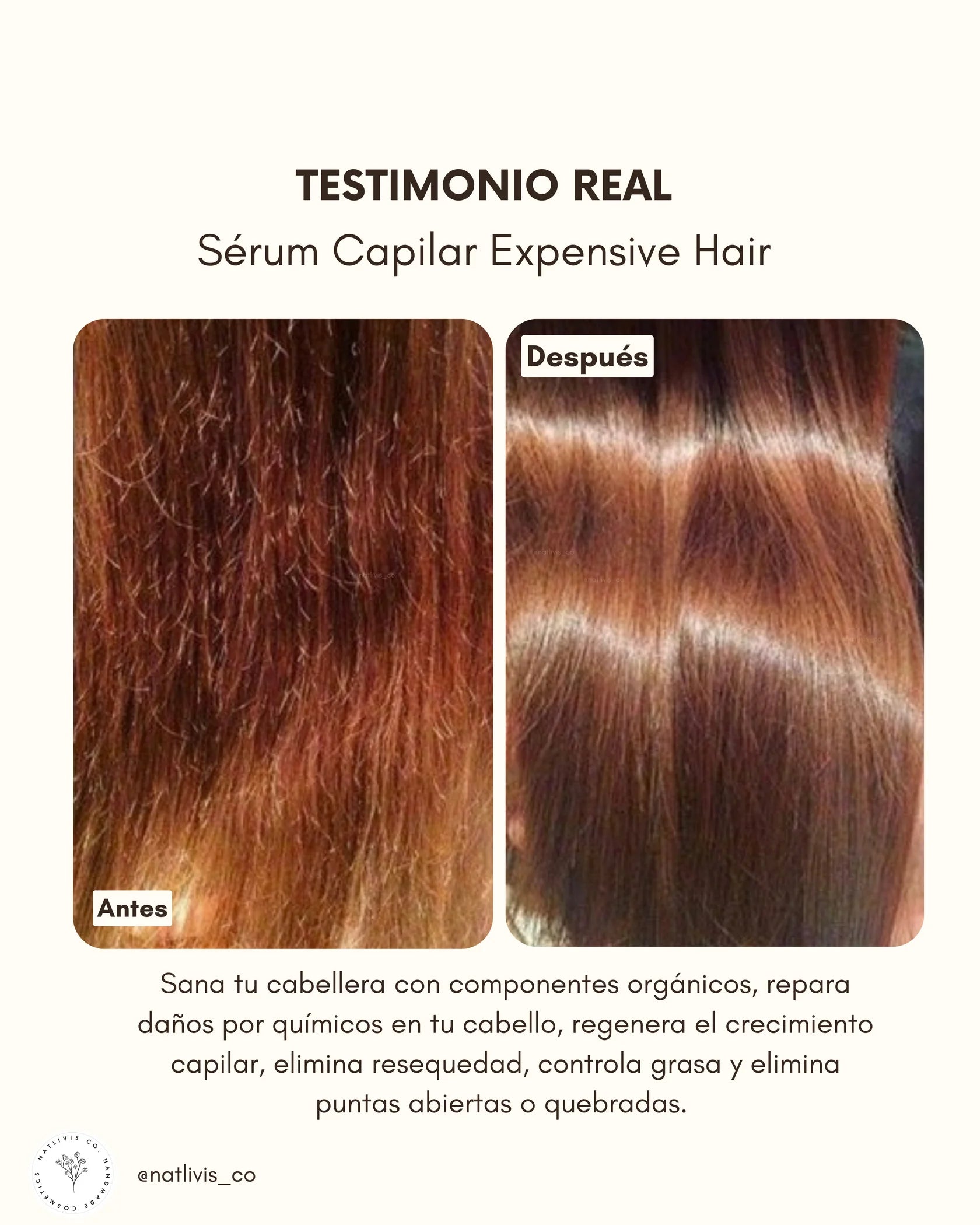 • Expesive Hair es un serúm apto para todo tipo de cabello. Es orgánico, ecológico, vegano y totalmente natural libre de químicos tóxicos.