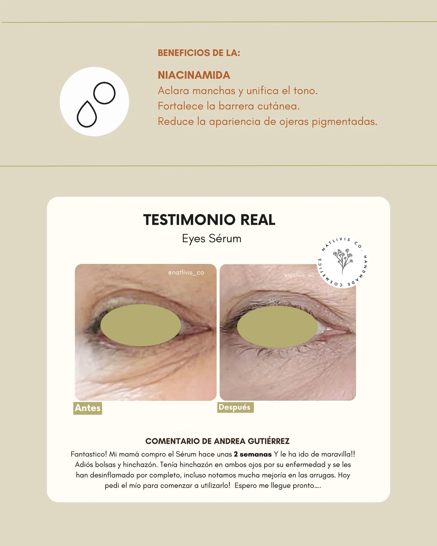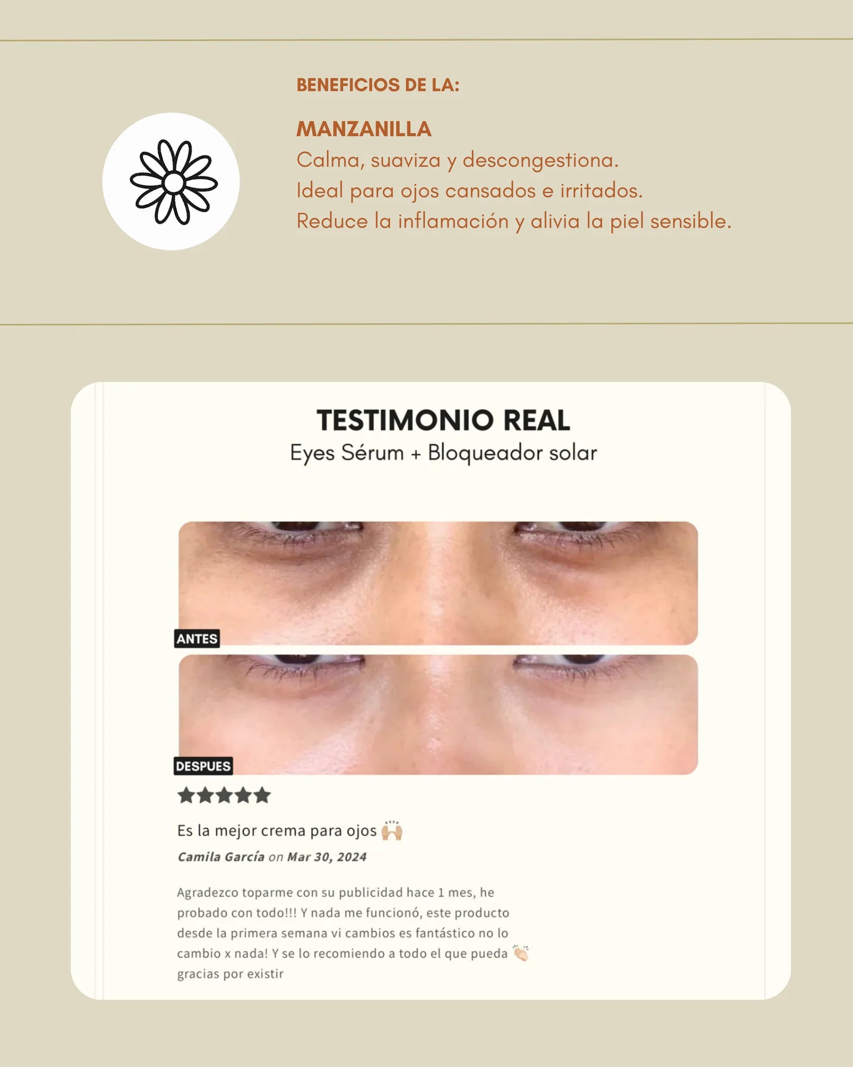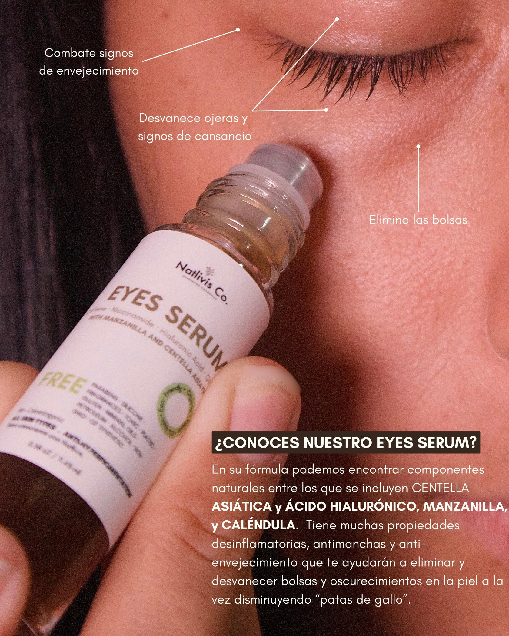 • Reduce círculos marcados en el contorno se ojos, por falta de cuidado y malos hábitos.