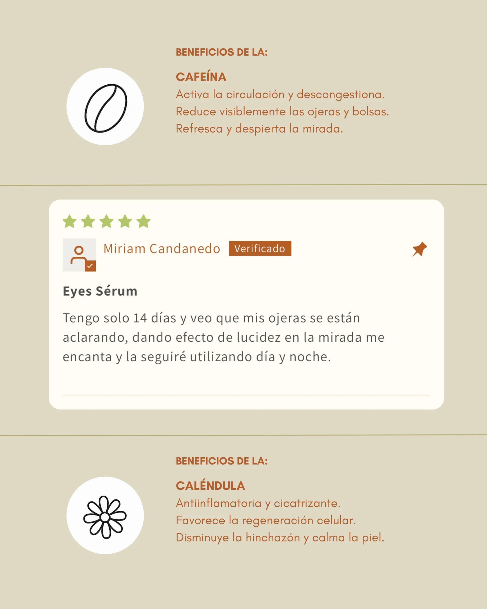 entre sus componentes, ayuda a eliminar bolsas bajo los ojos e hinchazón.