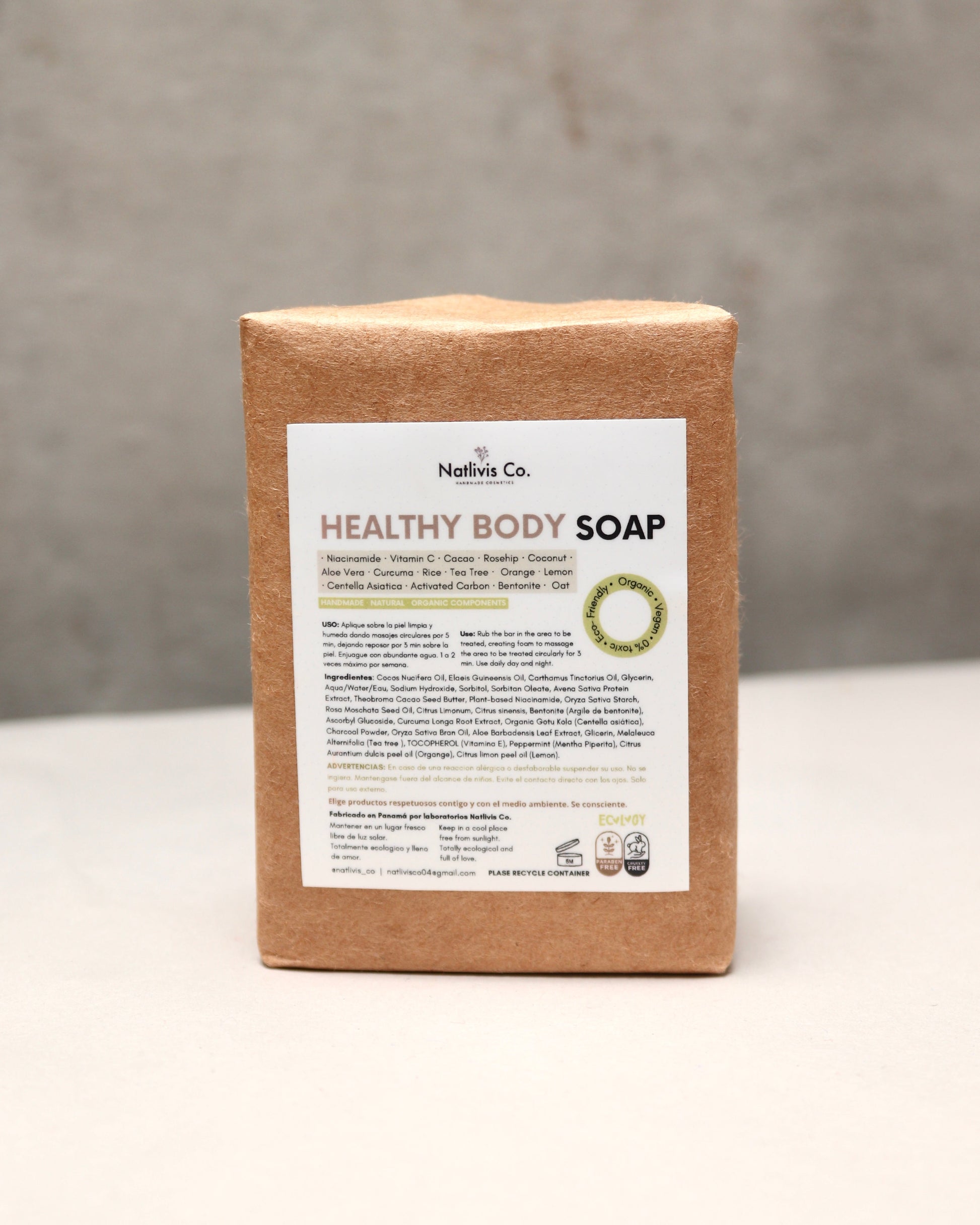 Niacinamide • Vitamin C • Cacao • Rosehip (Rosa Mosqueta) • Centella Asiatica • Coconut • Aloe Vera • Curcuma • Rice • Tea Tree • Orange • Lemon • Activated Carbon • Bentonite