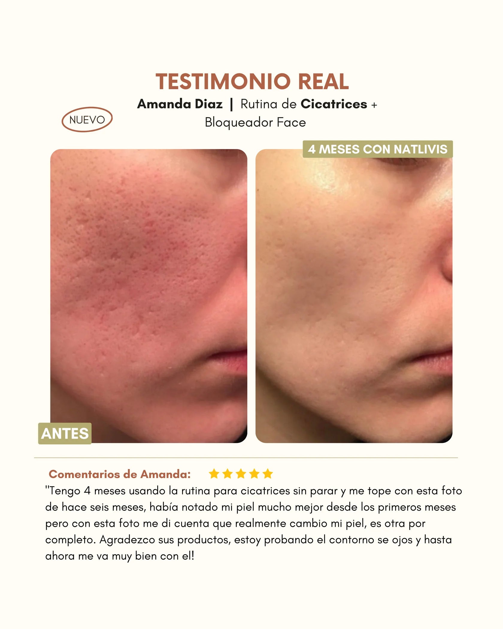 Para lograr reducir las cicatrices se debe utilizar el tratamiento completo, cada producto tiene una función diferente para lograr regenerar la piel.