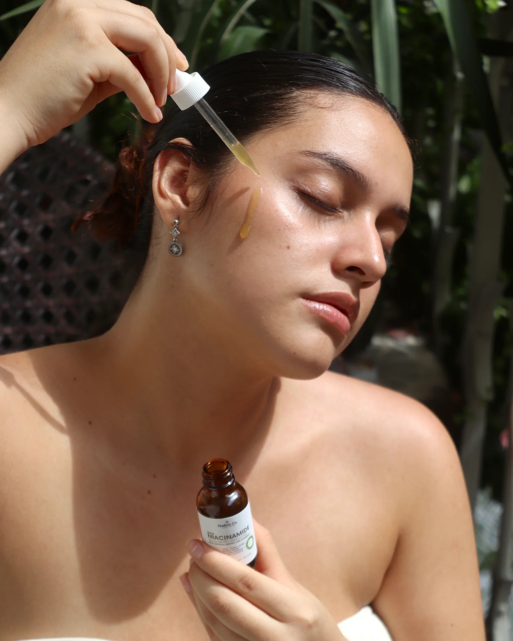 Reduce las manchas y combate el envejecimiento de la piel gracias a su alta concentración de niacinamida (vitamina B3), aloe vera, calendula y ácido hialurónico.