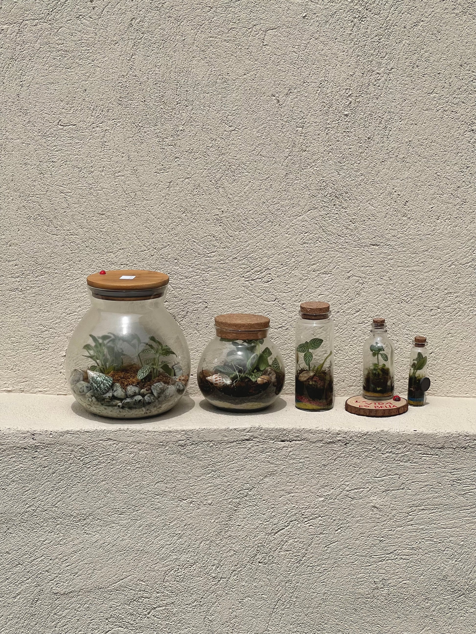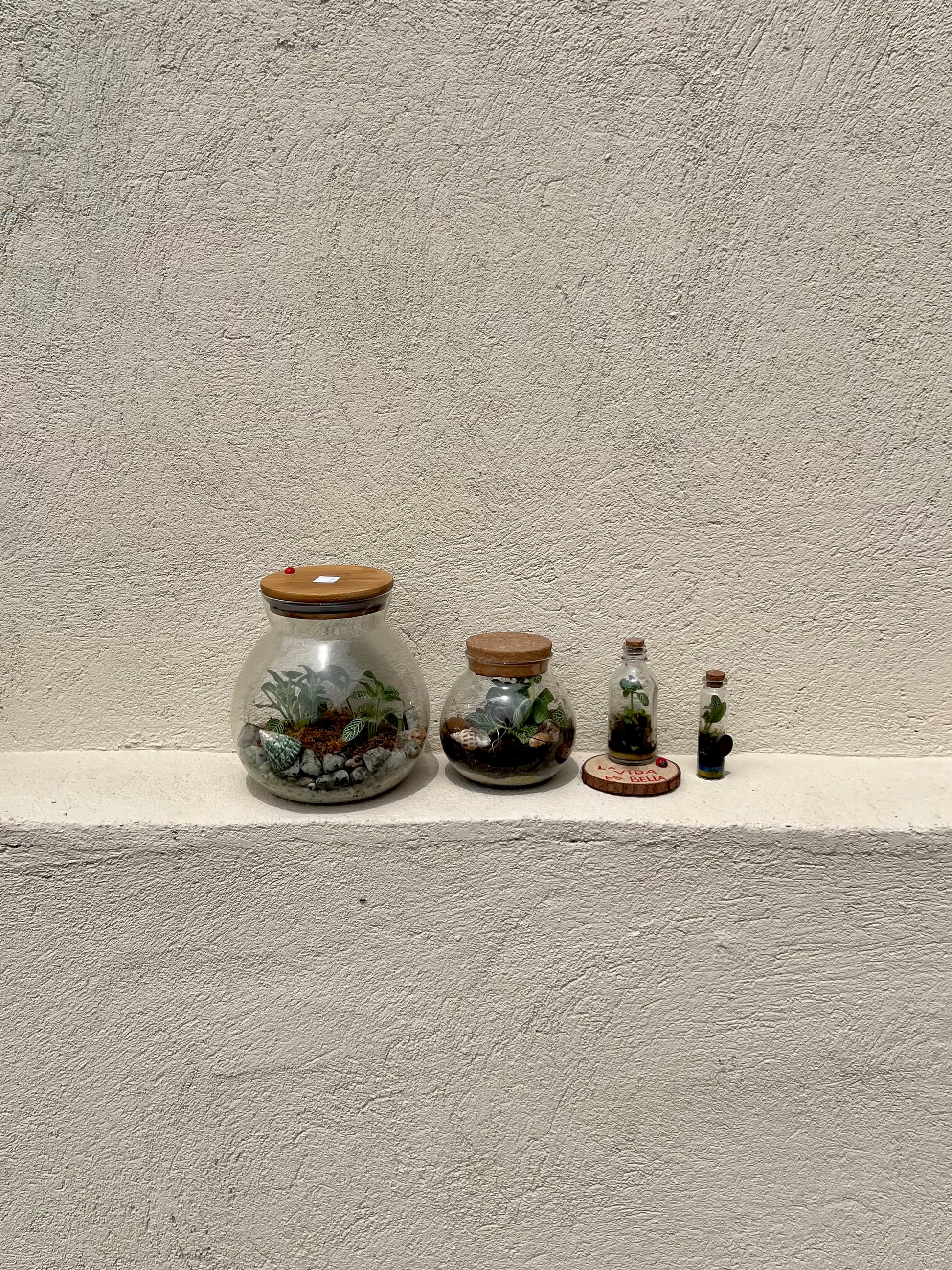 Disponibles en diferentes tamaños, cada terrario es único y artesanal, diseñado para aportar estilo, armonía y un toque verde a tu hogar u oficina. Perfectos para regalar o para consentirte con un detalle natural y moderno.